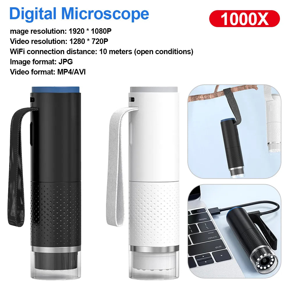 1000X Lightweight Magnifier Camera Amplification Magnifier WiFi Connection Compatible with Android/iOS/PC for Scalp/Skin Testin