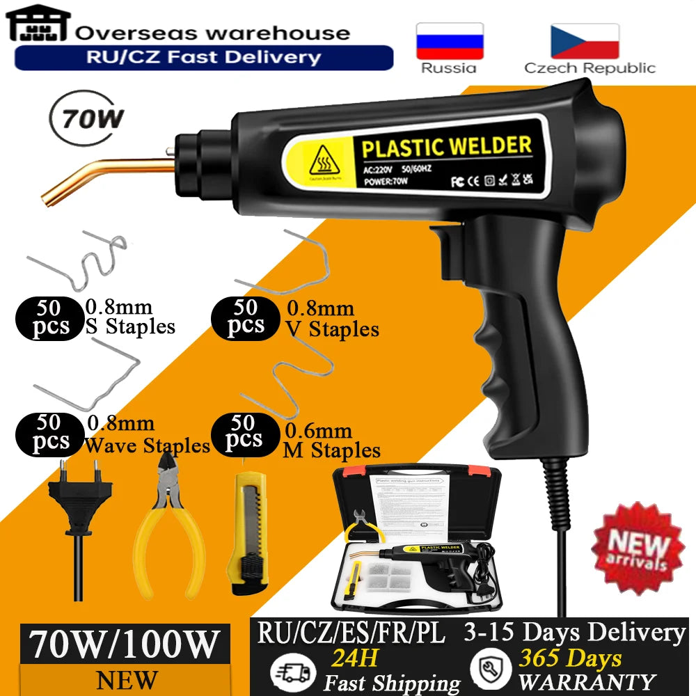 70W Plastic Welding Machine Hot Stapler Plastic Repair Kit Hot Staple Gun Car Bumper Crack Repair Kit with Plier knife 4 Types